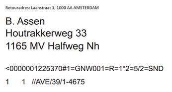 - Zelf etiketten gaan drukken: 2 dagen van tevoren de adressen aanleveren. Dan krijgen wij code die we dan op het etiket moeten drukken. Bovendien moeten dan alle poststukken op die volgorde worden ingepakt en aangeleverd. Wij rekenen € 20,- voor het inlezen & coderen van jouw adressenbestand(en). Dit geldt per bestand/tabblad dat wij voorzien van onze codering.