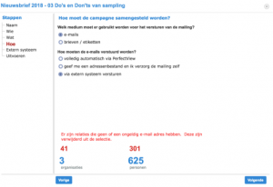 Check rode lettertjes: niet schrikken. Dit is ok. Check wel even de verhouding contactpersonen met de vorige nieuwsbrief of het klopt.