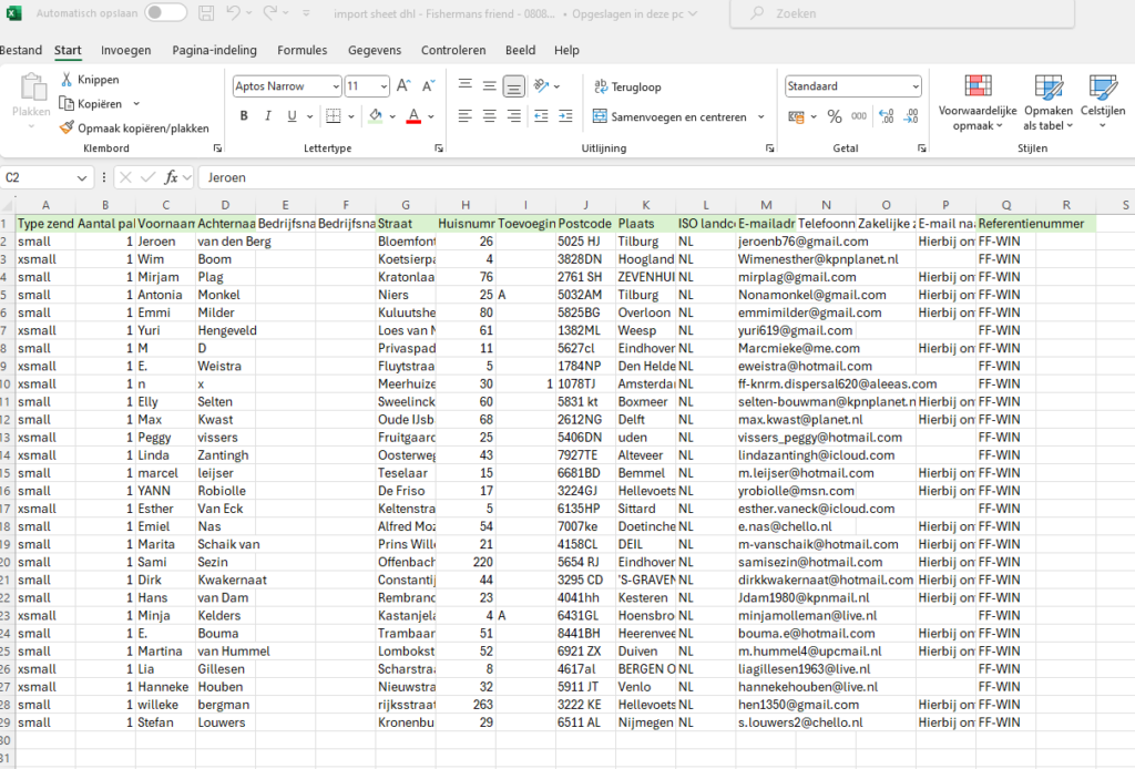 Het overzicht met winnaars ontvang je van Chris. Aan de hand van dit overzicht maak je een import bestand aan.
