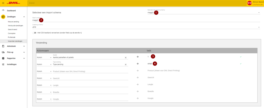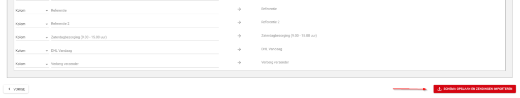 Als je deze stappen doorlopen hebt, druk je op schema opslaan en zendingen importeren.