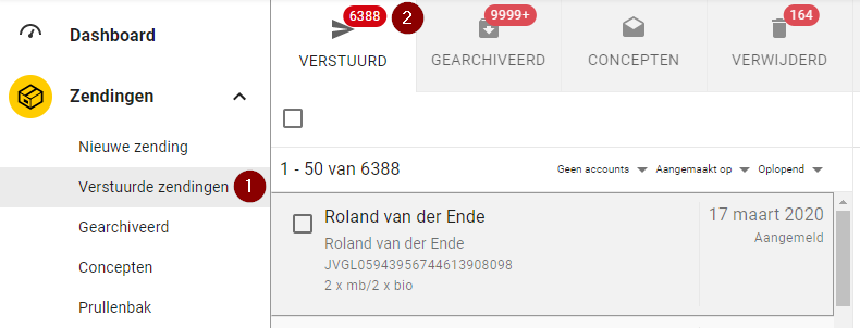 Je controleert hoeveel zendingen er nu verzonden zijn in mdp en noteert dat, zodat je later ter controle weet hoeveel je er hebt aangemeld (verschil tussen aantal nu en na export).