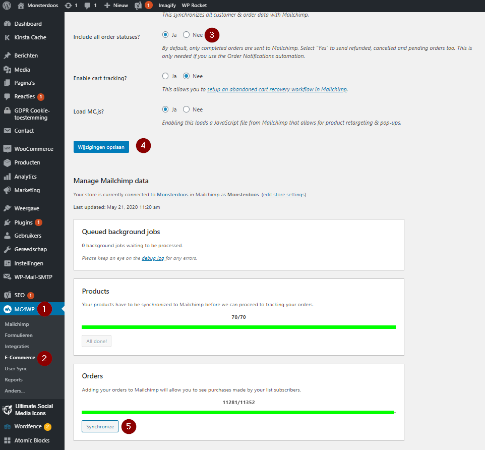 Herstel nu als je klaar bent met alle exports de verbinding met Mailchimp en synchroniseer de orders handmatig.
